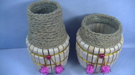 Декор стеклянных банок деревянными прищепками .2 Идеи своими руками .