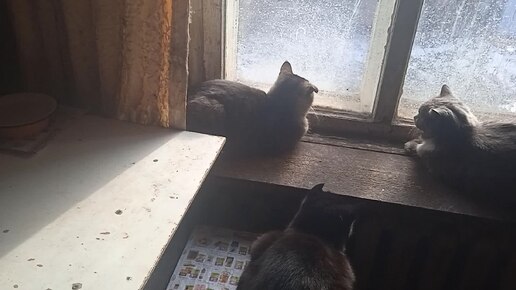 Кошки на окне😺🐱❤️❤️😀