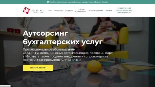 Создание двух лендингов на CMS Битрикс для компании "Новый мир", аутсорсинг бухгалтерских услуг, Москва. Краткий видеообзор.
