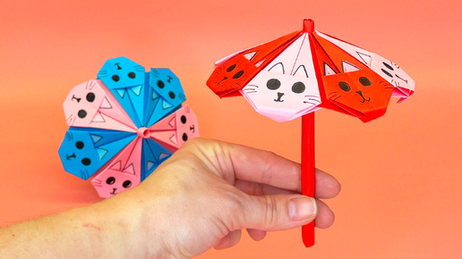 Оригами Зонтик Котик из Бумаги | Простая Поделка Своими Руками