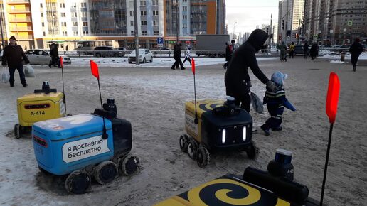 Санкт-Петербург, город-спутник Мурино, растёт на глазах, развивается. Особенно весело и мило выглядят малыши-роботы по доставке еды.
