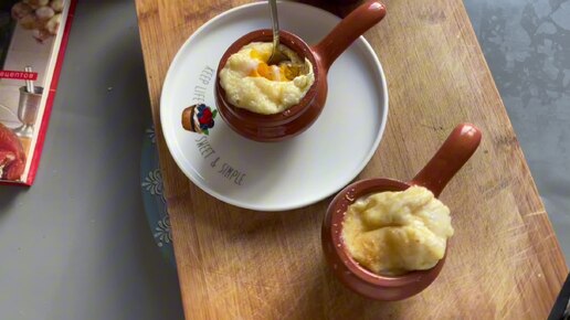 Яйца кокот с шампиньоновым пюре.