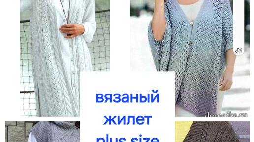 Удачные модели вязаных жилетов на размер Plus size.