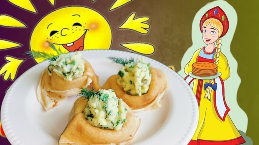 Масленица 2025. Блины с картошкой, бочковыми огурцами и зеленым луком.