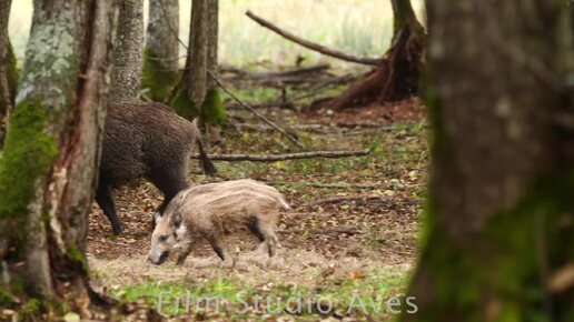 Семейство диких кабанов в дубовом лесу | Film Studio Aves