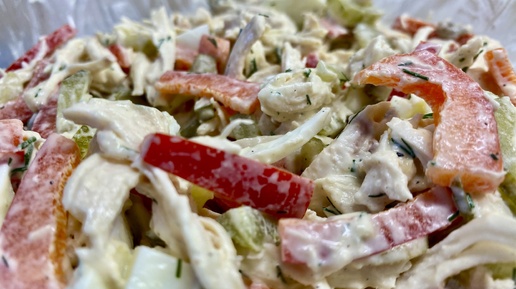 Салат с КУРИНОЙ ГРУДКОЙ, БОЛГАРСКИМ ПЕРЦЕМ И СЕКРЕТНОЙ ЗАПРАВКОЙ 🫑🧀🥚🥒🥗🍗