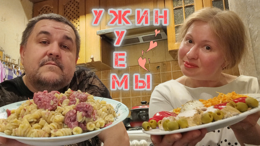 Ужин: блины с мясом, макароны с тушенкой, индейка с овощами | обжор не мукбанг