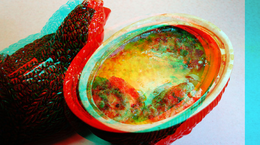 3D stereo red-cyan Бёдра куриные томлёные в молоке в духовке
