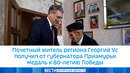 Почетный житель региона Георгий Ус получил от губернатора Приамурья медаль к 80-летию Победы