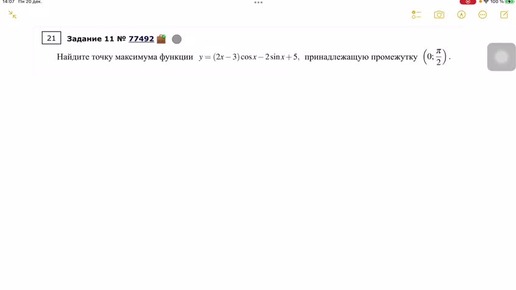 Задача 12, исследование функции, где есть и тригонометрическая часть и рациональная.