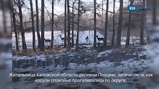 Семья гуляющих по калужской деревне косуль попала на видео