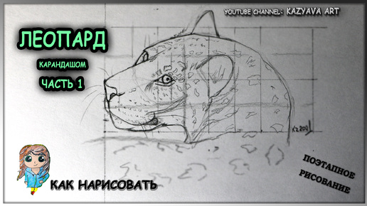 Как нарисовать морду ЛЕОПАРДА карандашом. Поэтапное рисование