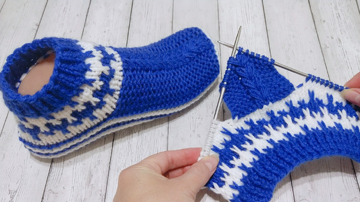 Носки-следки спицами ✅ с двухцветным узором 💙