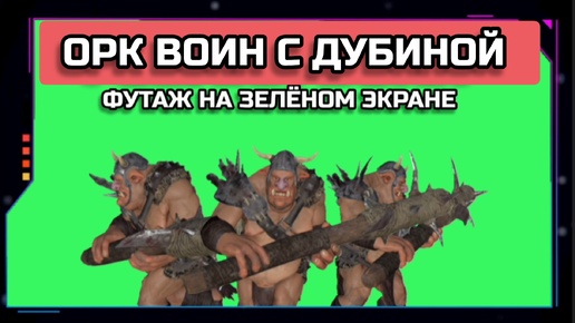 ОРК ВОИН С ДУБИНОЙ видео GREEN SCREEN футаж. ХРОМАКЕЙ АНИМАЦИЯ на зелёном фоне.