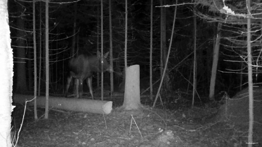 Лоси, куница, заяц, карельская лайка и охотник попали в кадр фотоловушки на новом солонце.