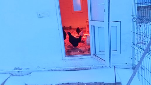 Куры отказались выходить на снег. Сказали, сама гуляй!