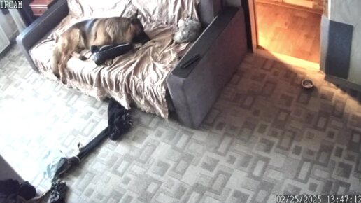 Первый раз за 2 недели уехала из дома и оставила их одних. Вот результат - Рекс развлекается с моей одеждой....