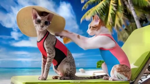 Кошки на пляже - Смешные кошки делают человеческие вещи