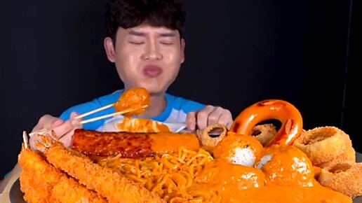 Мукбанг лапша с сыром 🧀,жареные креветки🦐,луковые кольца,колбаса| Еда на камеру | Mukbang ASMR | Мугбанг | Корейский мукбанг