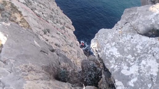 Спасатели достали чудом выжившую кошку Мусю со скалы Ласточкиного гнезда