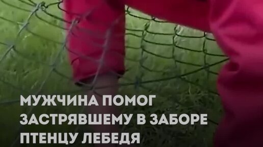 Мужчина помог застрявшему в заборе птенцу лебедя
