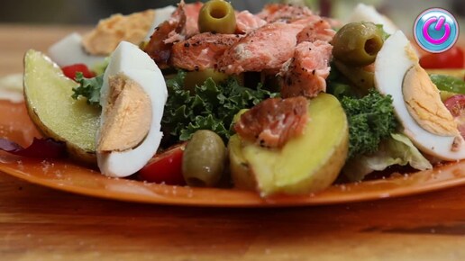Салат Нисуаз с семгой гриль