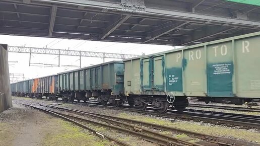 Маневровый локомотив ТЭМ2-101 с порожними полувагонами