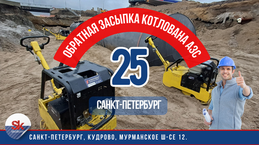 Обратная засыпка котлована АЗС песком с уплотнением.