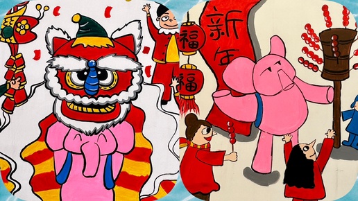 🎨 ОГРОМНЫЕ РОСПИСИ на стенах в честь Китайского Нового Года! 🐉✨ Ты такого ещё НЕ ВИДЕЛ! #КитайскийНовыйГод #Искусство #Китай #китайцы