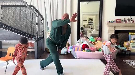 Заботливый отец Дуэйн «Скала» Джонсон танцует с дочерьми