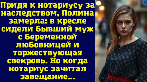 Придя к нотариусу за наследством, Полина замерла: в кресле сидели бывший муж с беременной любовницей и торжествующая свекровь