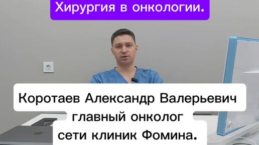 ХИРУРГИЯ В ОНКОЛОГИИ. Коротаев Александр Валерьевич главный онколог сети клиник Фомина.