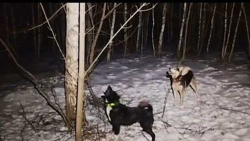 23 февраля, вечерний выход.на охоту с лайками