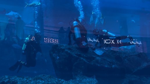 Большой басейн с акулами. Можно погрузиться к ним в клетке или без. Дубай. Эмираты. #путешествие