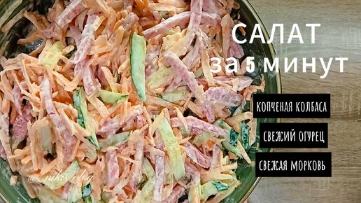 САЛАТ из свежей моркови и копченой колбасы. Сочный хрустящий и в меру соленый