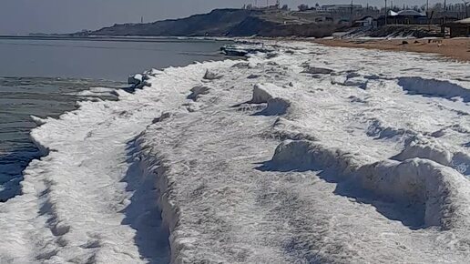Необычная зима, ледоход на море,интересно смотрится, волн нет, штиль, а льдинки ползут!!!!!