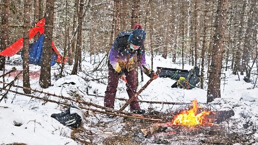 ОДНА НОЧУЮ ЗИМОЙ в ТАЙГЕ у РЕКИ в ГАМАКЕ. СХОД с МАРШРУТА.