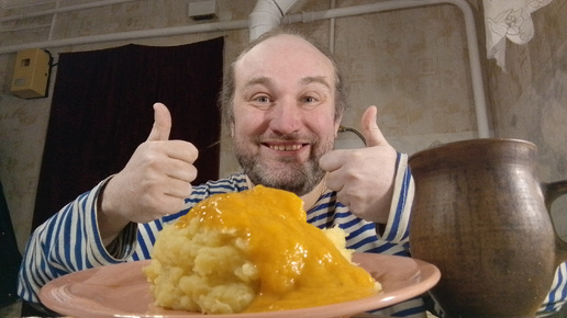Обед. Пюрешка с кабаковой икрой. Осталось много картошки. С этим надо что-то делать. О всем понемногу. Мукбанг. Обжор. Еда на камеру. Диета.