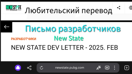 Любительский перевод и озвучка письма разработчиков New State Mobile!