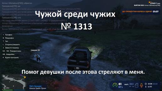 Чужой среди чужих [2025 Год.] № 1313.GTA 5 RP.Burton.Помог девушки после этова стреляют в меня.