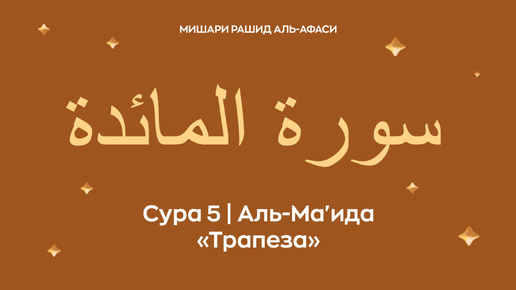 Сура 5 Аль-Ма'ида (араб. سورة المائدة — Трапеза). Читает Миша́ри ибн Ра́шид аль-Афа́си.