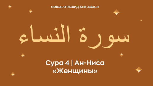 Сура 4 Ан-Ниса (араб. سورة النساء — Женщины). Читает Миша́ри ибн Ра́шид аль-Афа́си.