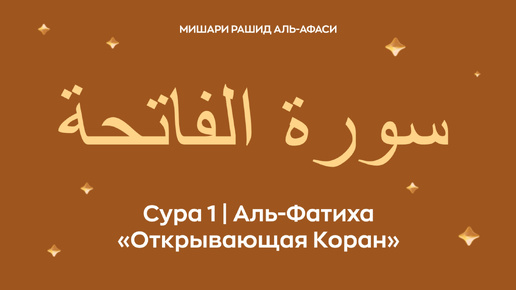 Сура 1 Аль-Фатиха (араб. سورة الفاتحة — Открывающая Коран). Читает Миша́ри ибн Ра́шид аль-Афа́си.
