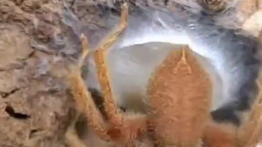 Паук охотник плетет кокон. Heteropoda javana кокон.