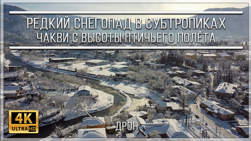 Редкий снегопад в субтропиках: Чакви с высоты птичьего полёта | 4K