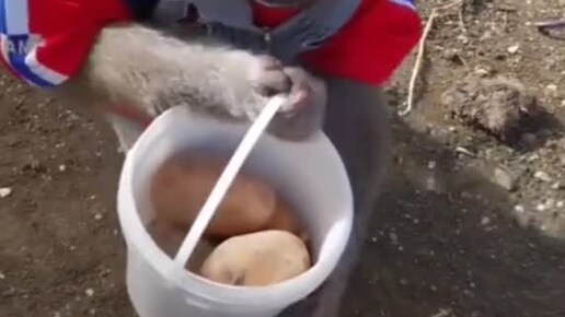 Обезьянка Ника сажает картошку 🥔