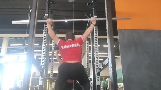 Приседания со штангой поднятой над головой 42,5 кг. Могу больше.