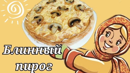 Масленица 2025. Блинное застолье. Сытный блинный пирог с сыром и грибами.