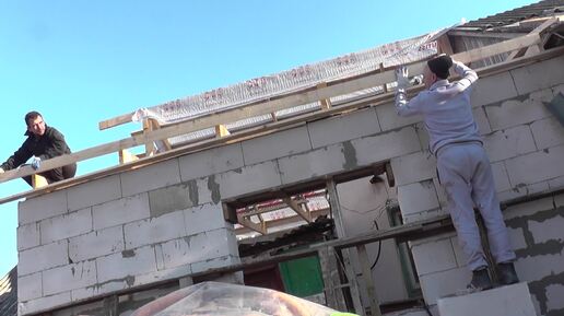Продолжение постройки крыши. Строительство пристройки к дому 45 серия
