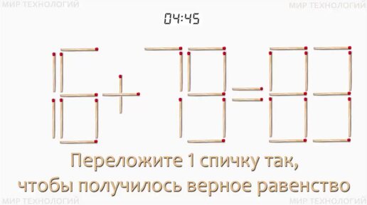 Задача 427. Переложите 1 спичку так, чтобы получилось верное равенство (16+79=83). Задачи и головоломки со спичками.